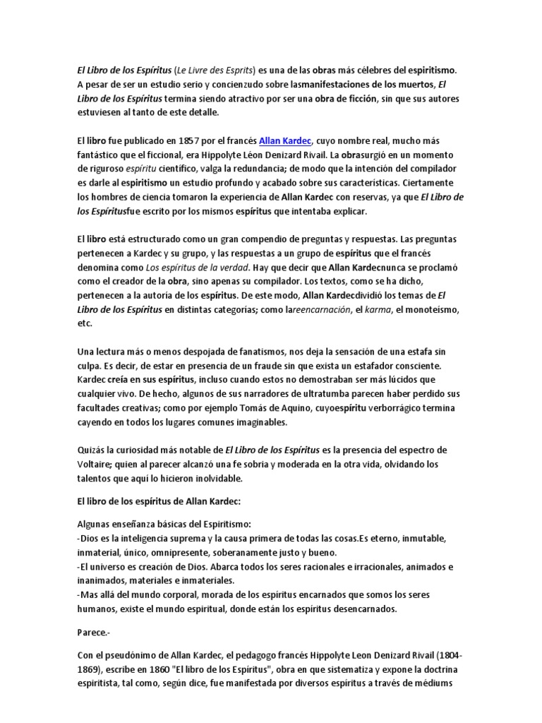 Allan kardec el libro de los muertos en español pdf : Como principio fundamental, el espiritismo sostiene que los espíritus de los muertos Su «espíritu protector» le había informado de que en una existencia previa, en el tiempo de los druidas, ambos se habían conocido en la galia y él se llamaba «allan kardec». Teoría de todos los géneros da manifestaciones, los medios. El libro de los muertos allan kardec.